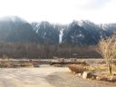 午前10時。上高地入りです。土曜日なので徒歩で入山するハイカーが大勢いました。雪は例年より少なく県道上高地線の釜トンネルから大正池までの区間は舗装路が出ています。路肩にいつもは1m以上ある雪もほとんどありません。現在、大正池から帝国ホテルまでの区間で除雪が行われています。バスターミナルの駐車場は除雪が終わっています。きょうは焼岳ふもとの林道からの入山ですがこちらの道も雪が少ないです。田代橋周辺や当館前でも舗装面が出るくらい雪がありません。珍しいことです。